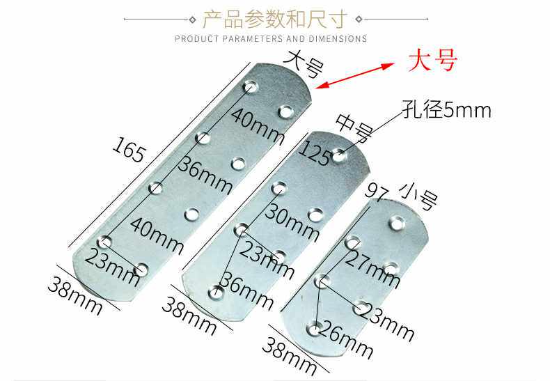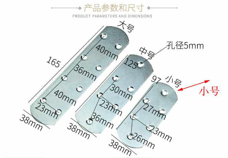 Small 97 * 38mm 5 Middle 125 * 38mm 5 large 165 * 38mm 4