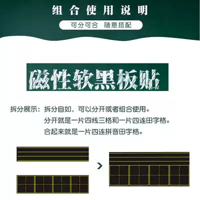 English magnetic four-wire three-grid field word grid black and white board stickers Pinyin grid magnet stickers small blackboard strip soft magnet teaching aids