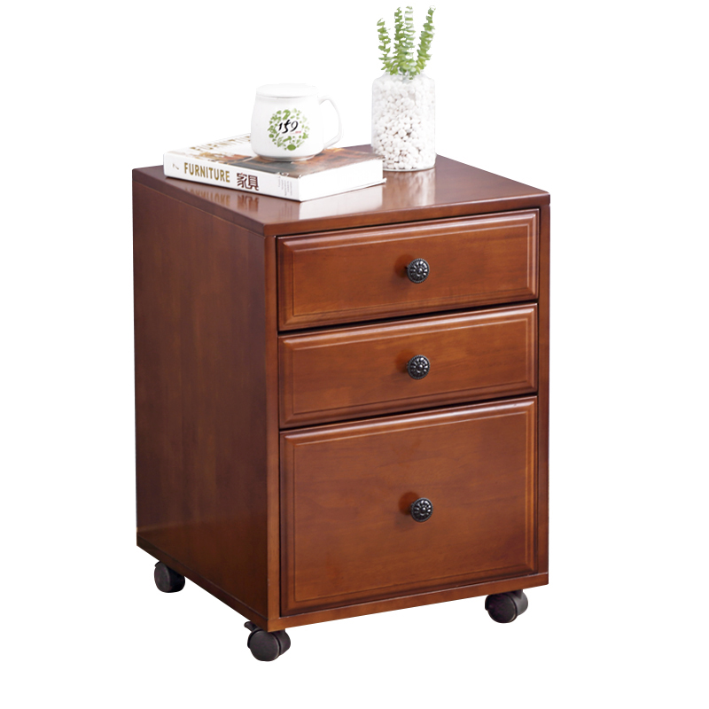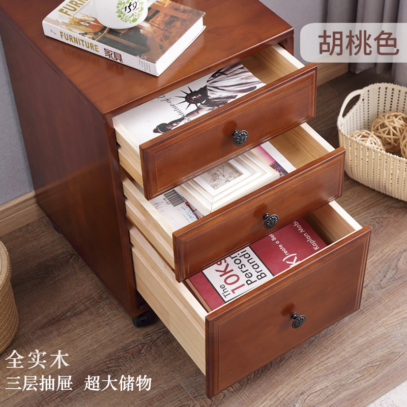 Full solid wood bedside table simple modern three-chest cabinet bedroom mobile storage cabinet multi-function bedside storage cabinet