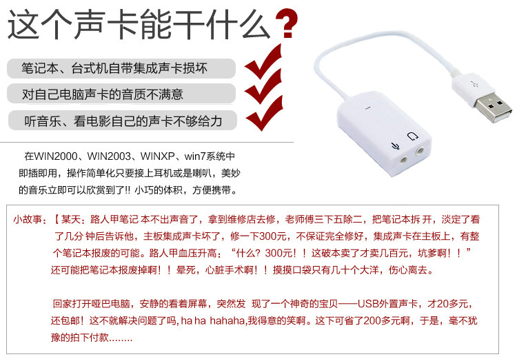 USB7 1 Independent sound card computer external external sound card desktop computer notebook general sound card free of drive