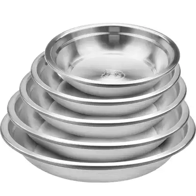 304 stainless steel plate disc plate Household dinner plate dumpling plate flat bottom soup plate Barbecue plate Fast food deep plate