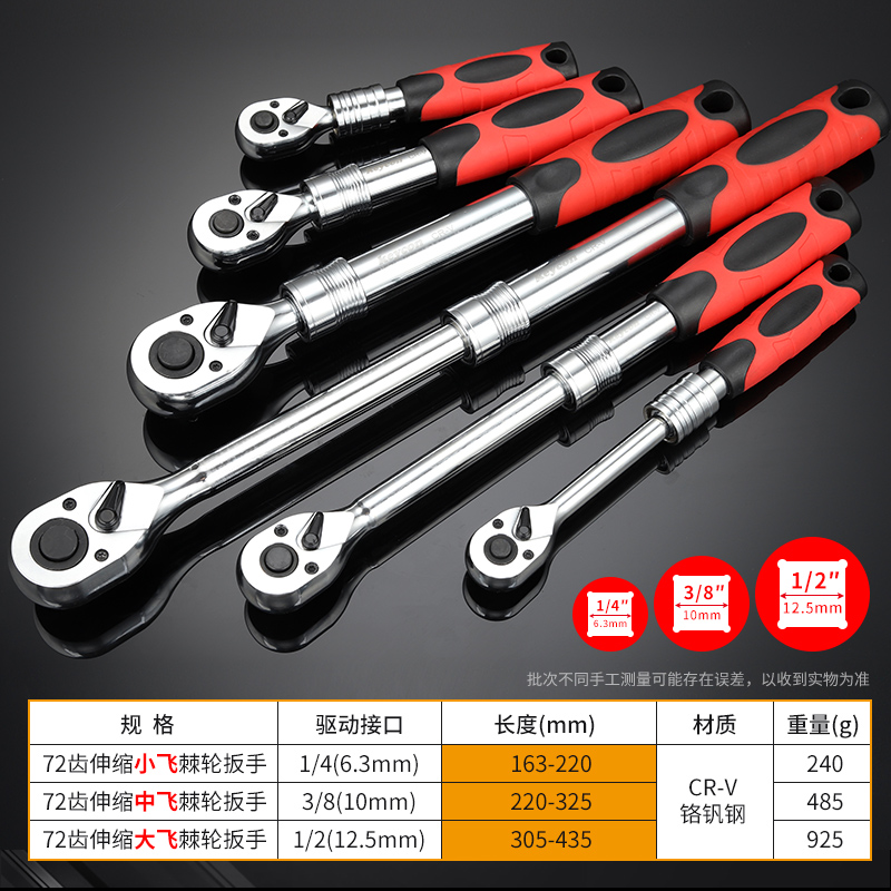 1 4 telescopic 1 4 inch sleeve wrench ratchet (6 3mm connector) 3 8 telescopic medium flying ratchet (10mm connector) 1 2 telescopic large flying ratchet (12 5mm pick
