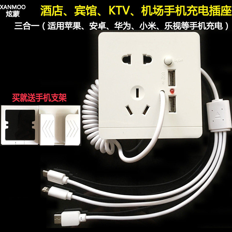 Five holes with usb socket panel 86 Type of concealed mobile phone power 2100MA Charging wall plug-in with multipurpose data line