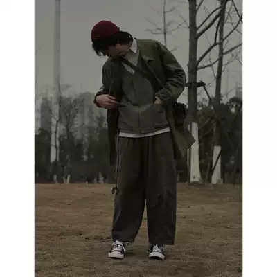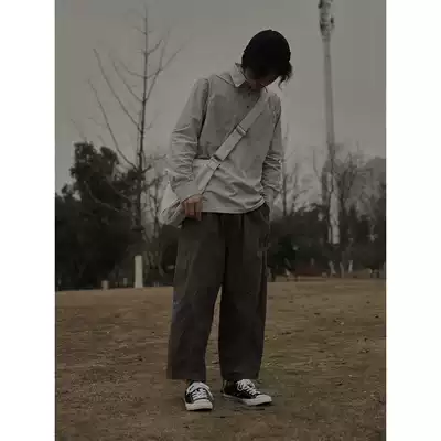 Summer thin retro frilled wide legs loose overalls men's Japanese straight Joker nine casual pants men's tide