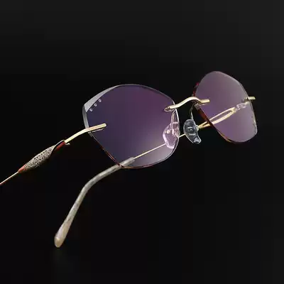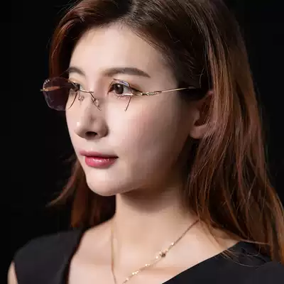 Rimless glasses female pure titanium myopia glasses trimming glasses diamond cutting degree myopia anti-blue light comfort