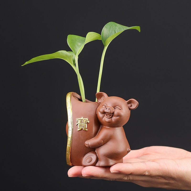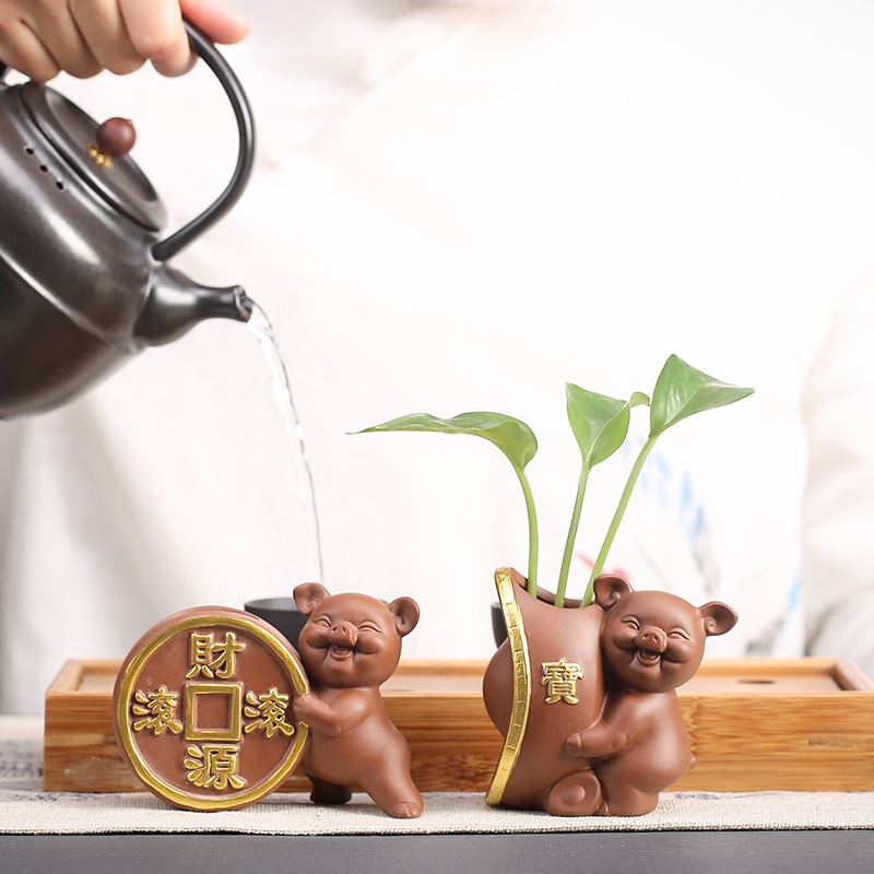 Handmade personality creative purple sand tea tea decoration piece fine cultivated tea play pork hydro flower
