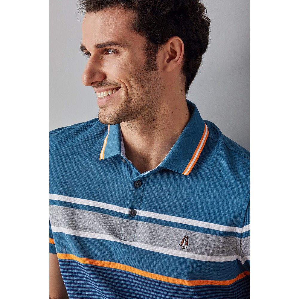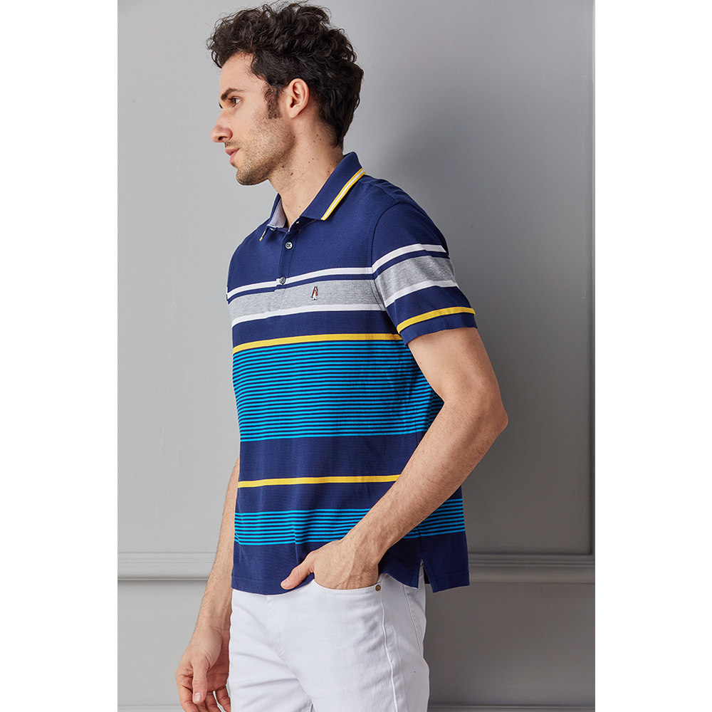 Hush Puppies Leisure Steps Men's Clothing Summer New Pure Cotton Striped Turned T-shirt POLO Shirt PD-29321
