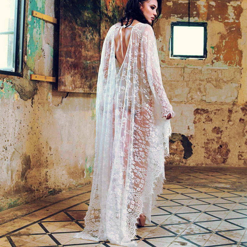 Fattened plus lengthened lace beach skirt Loose bikini blouse swimsuit with beach wrap skirt drape
