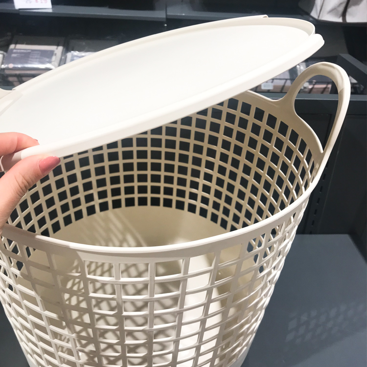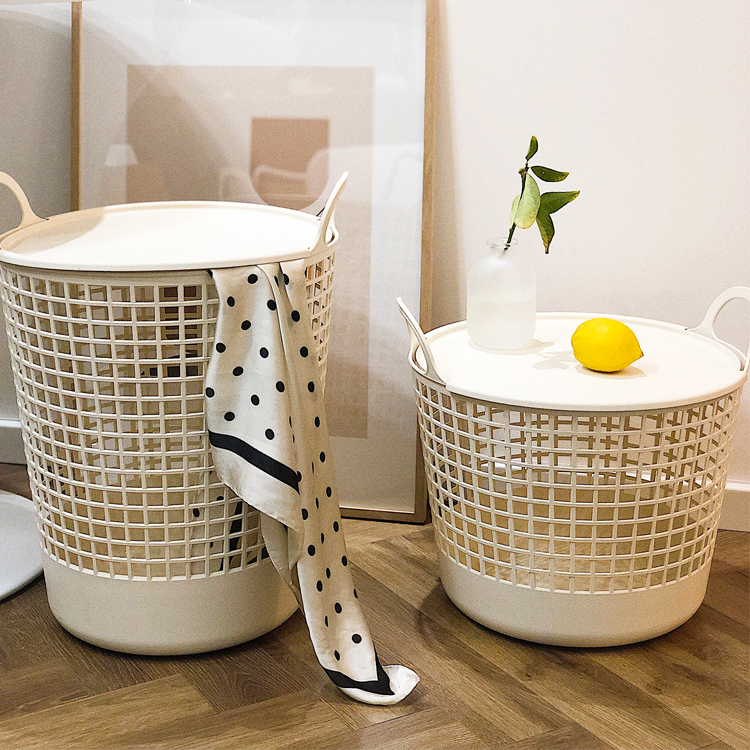 Korean brand Hansen simple style PP material off-white with lid with handle gloves storage bucket dirty clothes basket