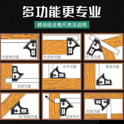 Movable angle ruler Industrial grade 90 degree horizontal moving combination Multi-function woodworking 45 degree angle tool High-precision thickening