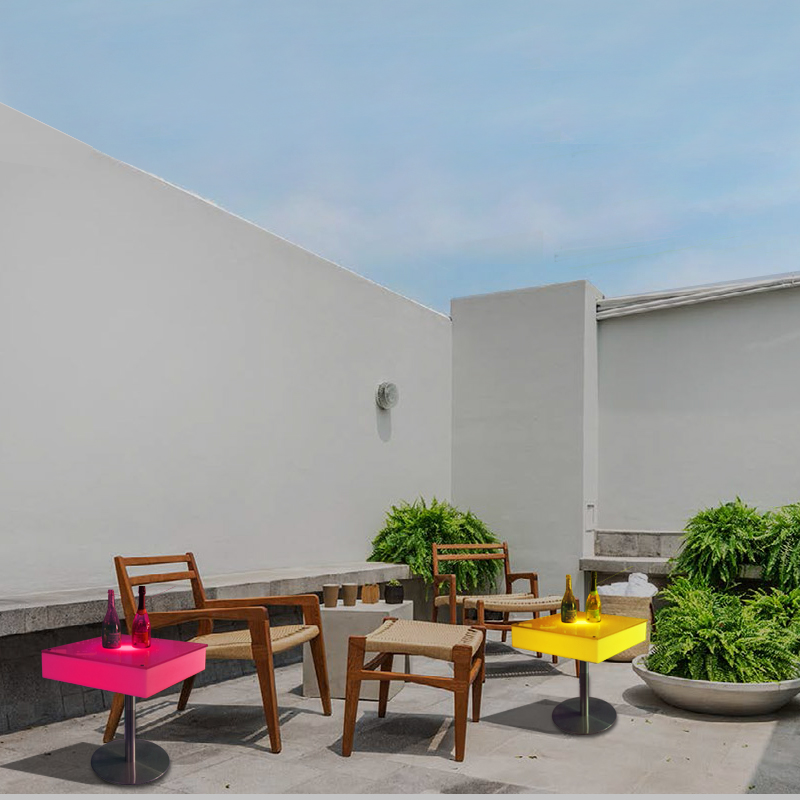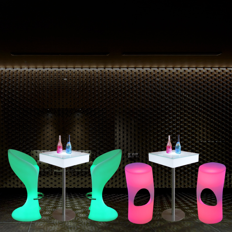 LED atmosphere luminous square wine clear bar with high foot table bar table and chair creative furniture in seven colors outdoor remote control