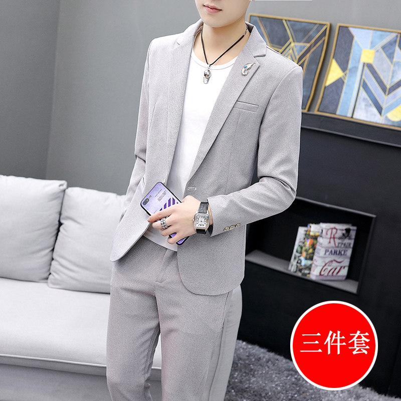 Spring Autumn Western-style Suit Men's Casual Suit Han Version Sashimi Three Sets Handsome Gas Jacket Business Trend