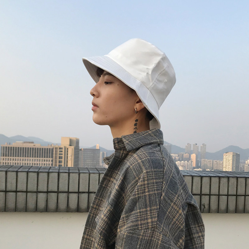 Hat men's trendy solid color fisherman hat men's cool four seasons sunscreen sun hat Japanese Korean version fashion hip-hop pot hat men