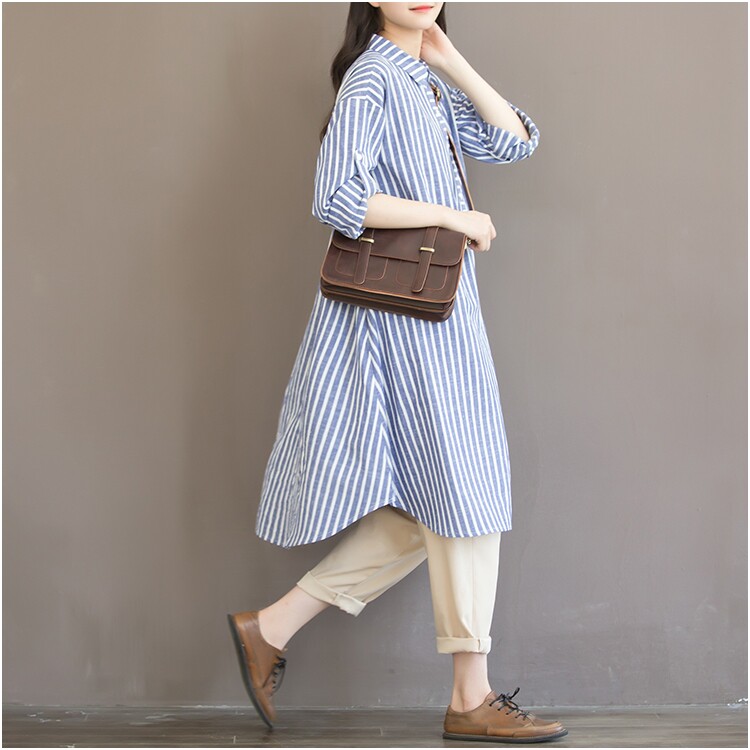 Fat mm weight plus 200 kg thin middle - long pregnant woman autumn dress Han edition loose striped shirt