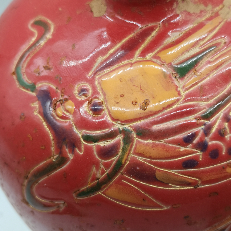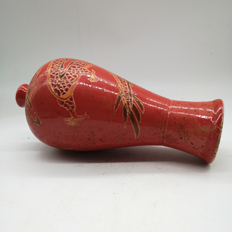 Song Dingkiln Red Glaze Plus Color Lettering Plum Bottle Imitation Museum Out Earth Artifacts Ancient Play Antique Vintage Decorations