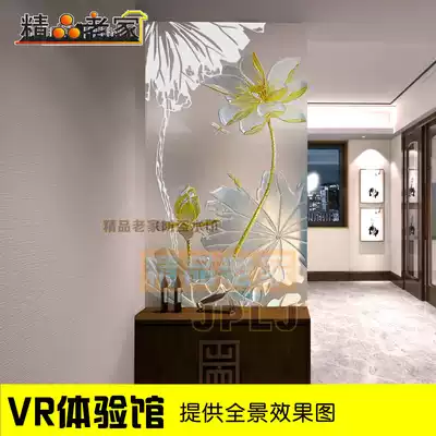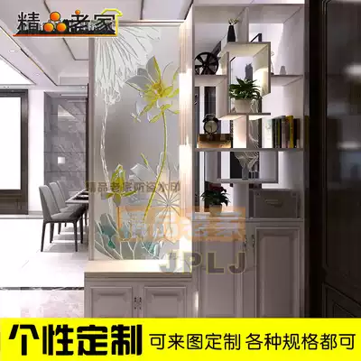 Carving Lotus Art glass transparent double-sided frosted Chinese dining room balcony dry area partition shoe cabinet 216