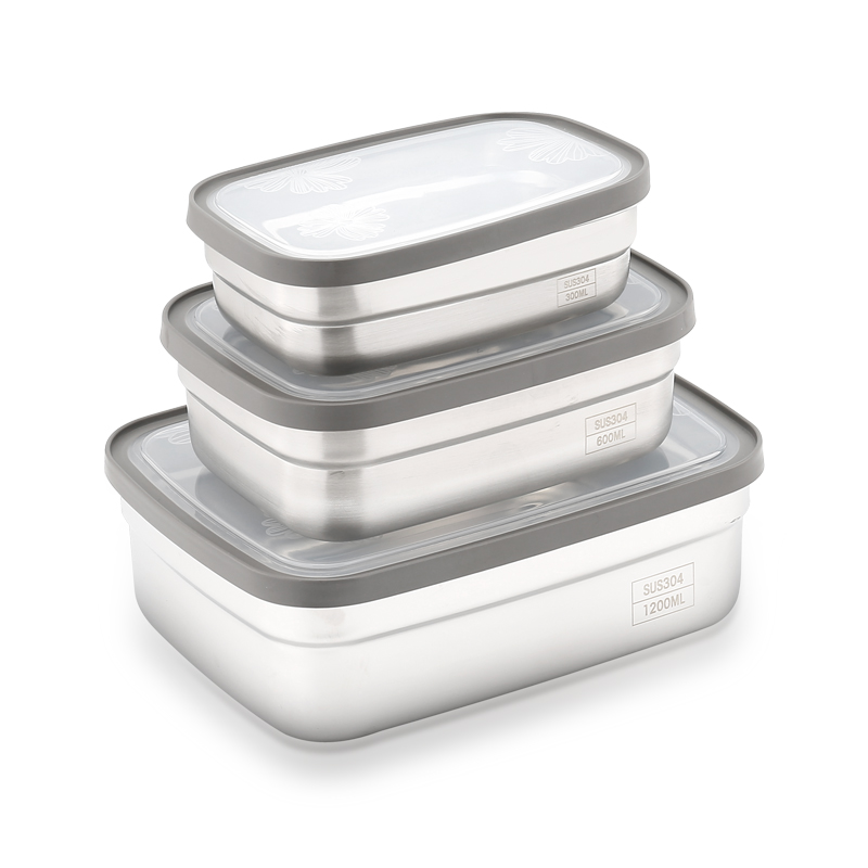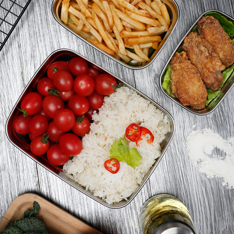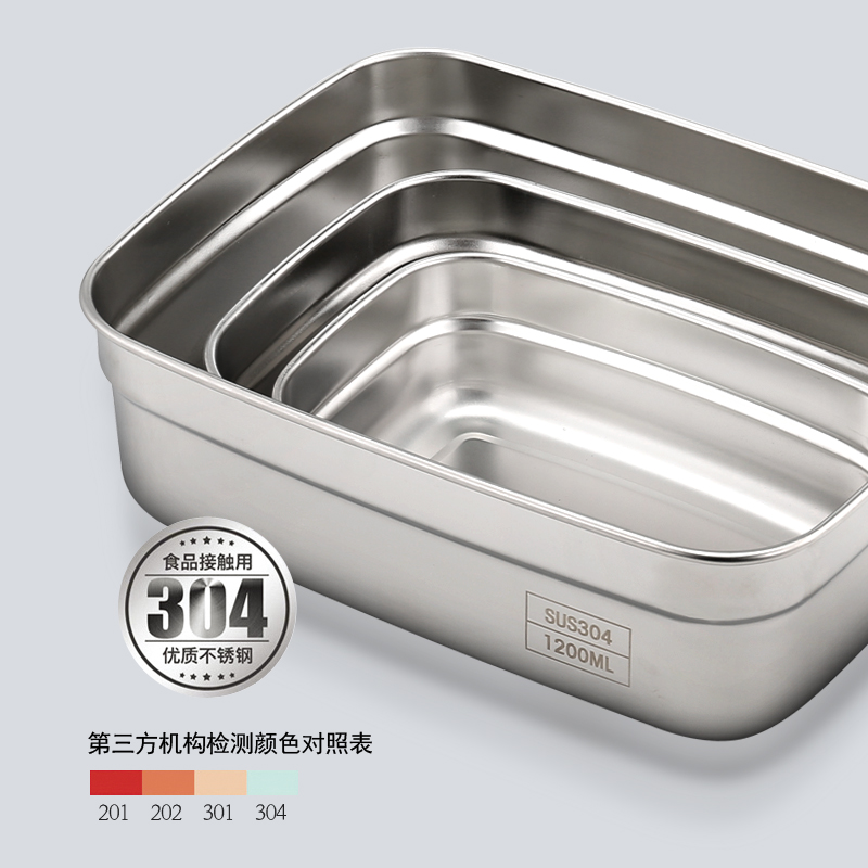 304 Stainless Steel Refreshing box rectangular with lid Home Dining Box Lunch Box microwave Microwave Rice Vegetable Preservation Canteen