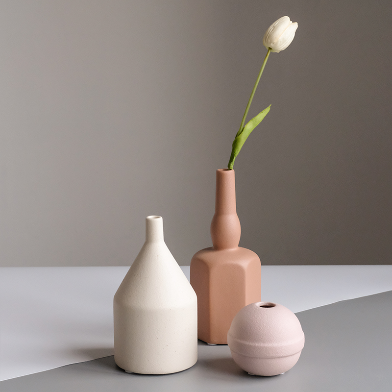 A set of 7 vase combinations Morandi Vase-Milk White Morandi Vase-Egyptian Yellow Morandi Vase-Prussian Blue Morandi Vase-Sunlight Yellow Morandi Vase-Rust Red Morandi Vase-Gray