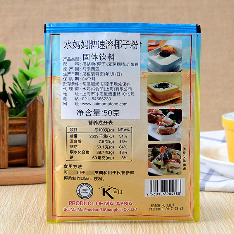 Water mother instant coconut powder 50g Malaysian coconut milk powder coconut powder solid drink coconut juice sago dew baking