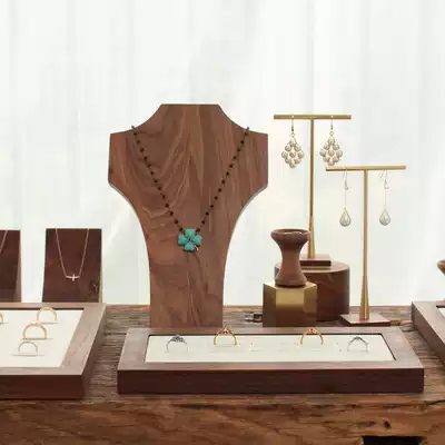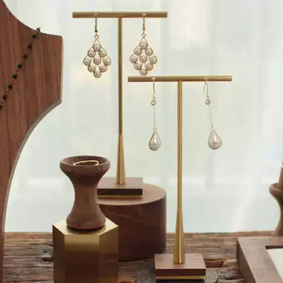 Golf change brown wooden cup metal walnut ring ring holder trumpet metal walnut ring holder medium metal walnut ring holder large brown wooden curved ear ring frame double paulownia ear ring plate