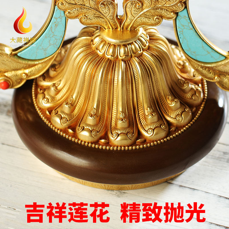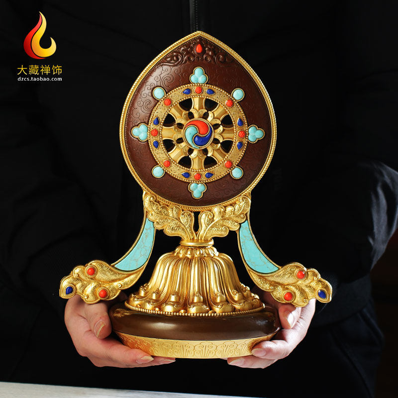 Tibetan Huibao pure copper antique gilt gold auspicious Falun Falun Golden Wheel home Buddhist hall offering ornaments tantric supply large