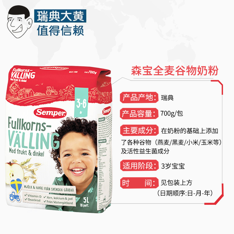 Rhubarb home spot] Swedish senbao Semper infant 3-year-old baby nutritious sub-food cereal grain milk powder