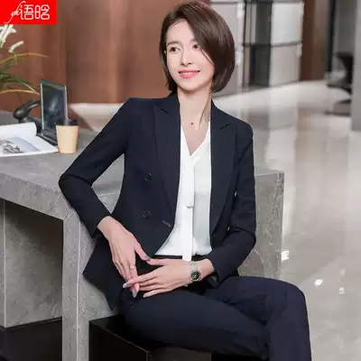 Suit suit women's pink autumn jacket broadcast art test clothing work clothes suit overalls two-piece sleeve skirt
