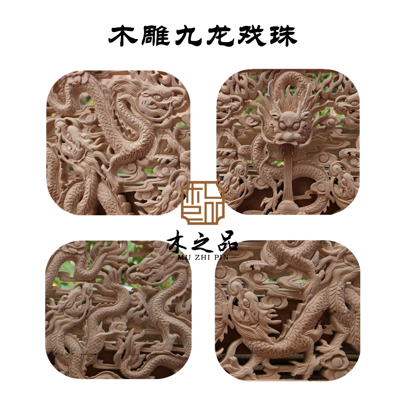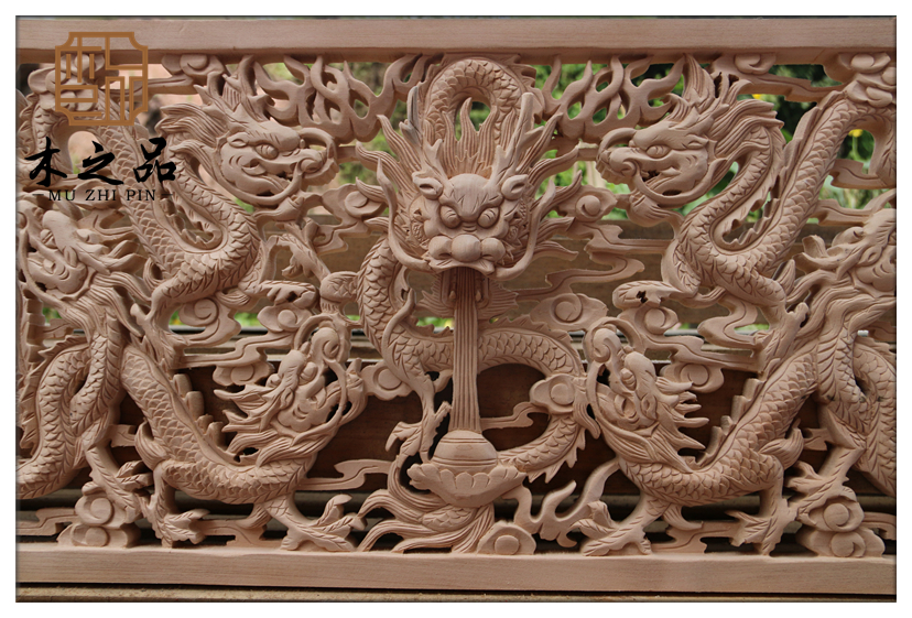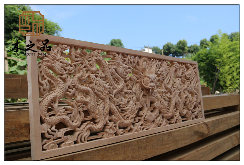 Dongyang wood carving pendant Chinese decoration background wall hanging screen plaque horizontal screen carving crafts Jiulong opera beads
