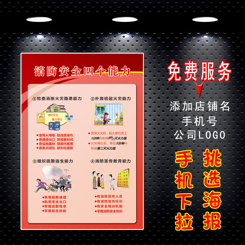 Fire Safety Knowledge Fire Safety Notice Escape Method Poster figure Four abilities to build ten cha ten Forbidden Propaganda Card