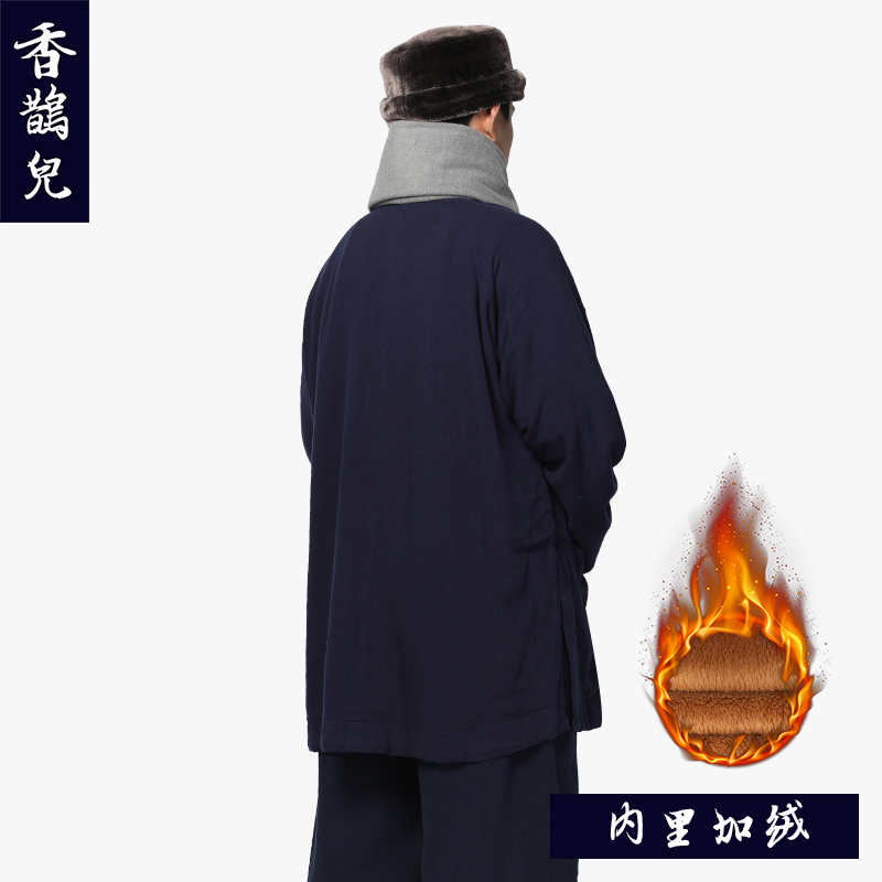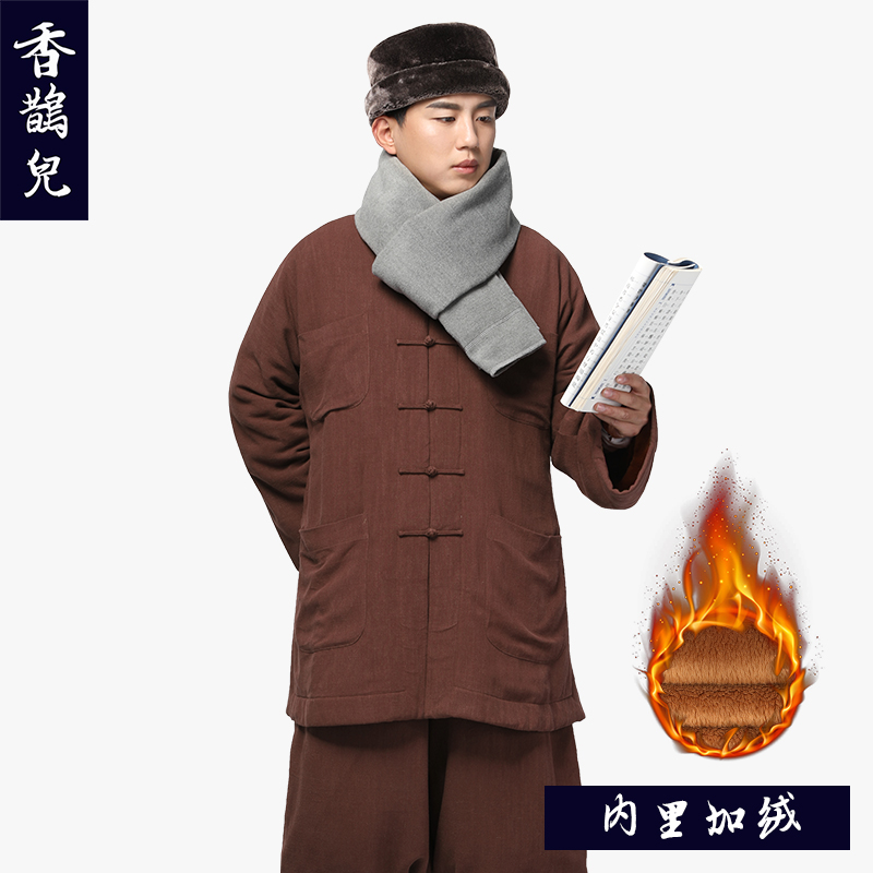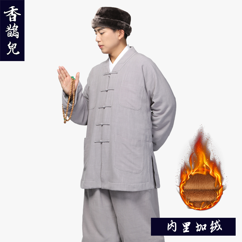 Shangyuanxiang magpie linen plus velvet monk clothing short jacket suit winter thickened small jacket monk clothing monk clothing warm monk clothing