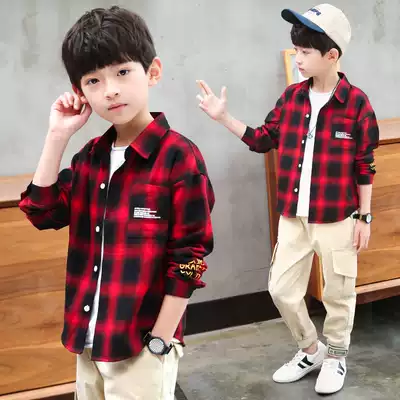 Children's set boys' spring shirt 2020 new middle and Big Boy spring and autumn casual plaid long sleeve shirt tide