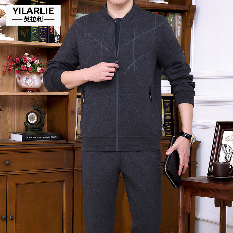 2020 spring sports suit Men's middle-aged leisure sportswear suit Dad spring coat free three-piece set
