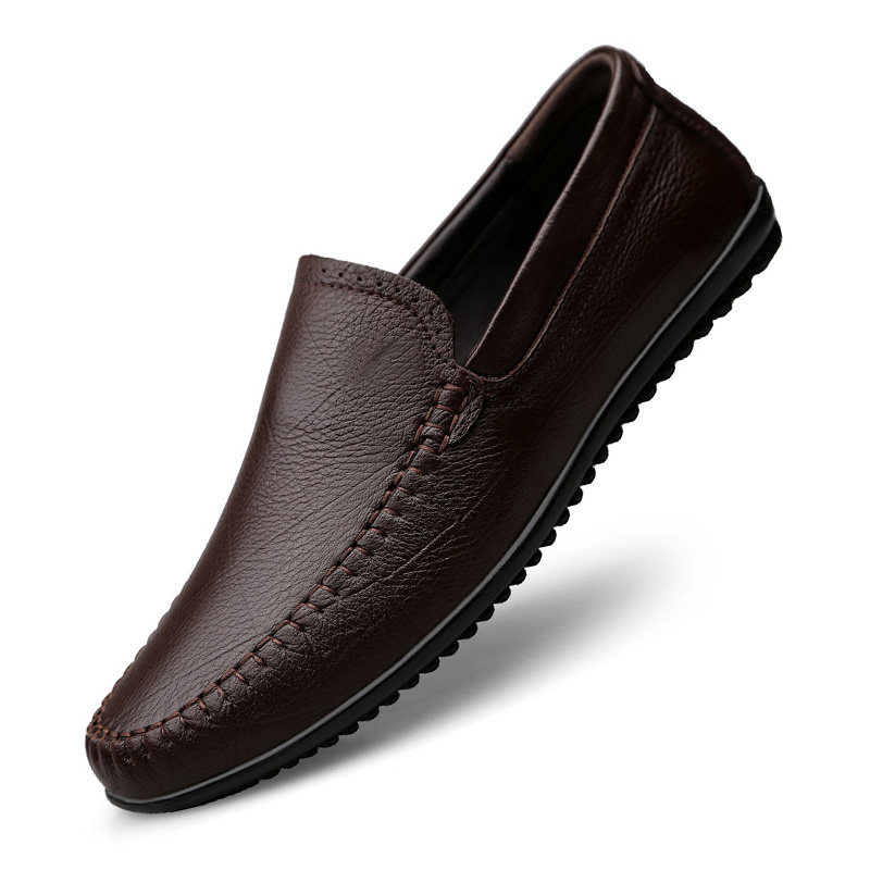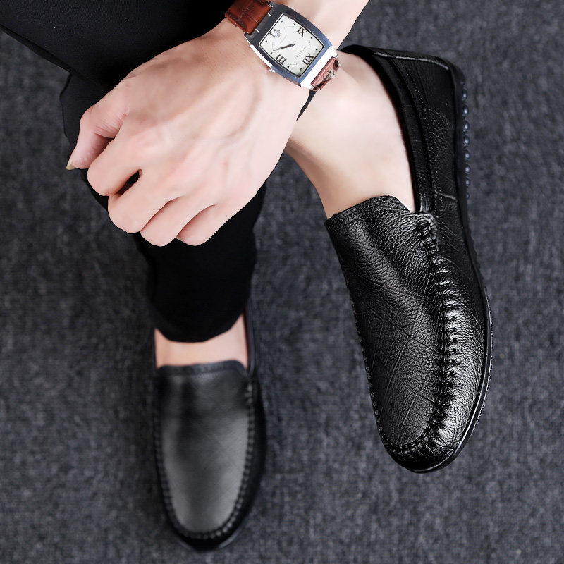 Casual leather shoes men's summer trend breathable small leather shoes Korean version leather men's beanie shoes cover feet 3637 lazy shoes