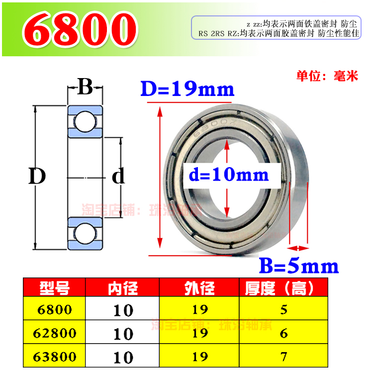 6800ZZ6800RS motor grade 6800ZZ fine grade 6800Z 6800zz thickness 6mm63800ZZ(10*19*7mm)