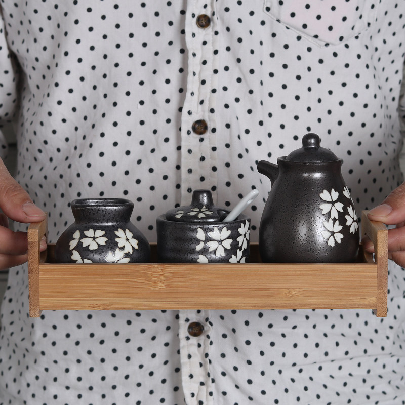 Porcelain Heart Workshop and Wind Day Style Suite Flavoring Cutlery Base Day Style Seasoned With Base Bamboo Dish