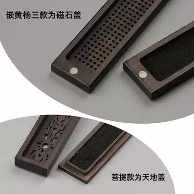 Ebony lying incense box Household indoor sandalwood stove Wooden tea ceremony line incense box Incense burner agarwood stove line incense burner