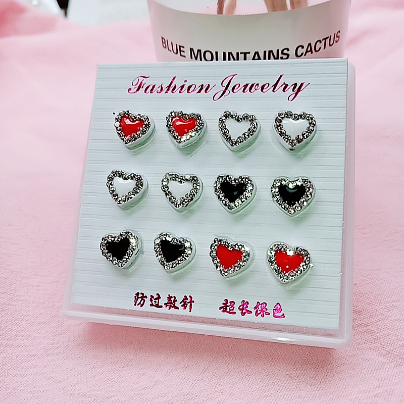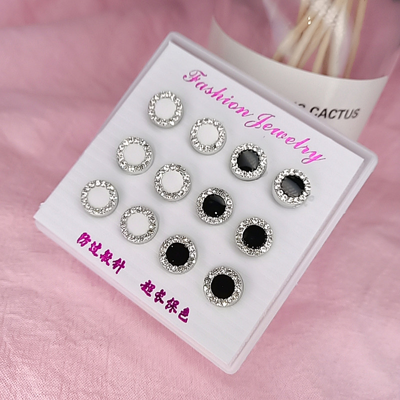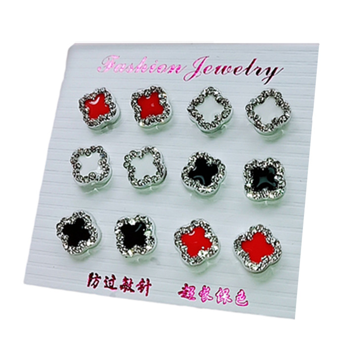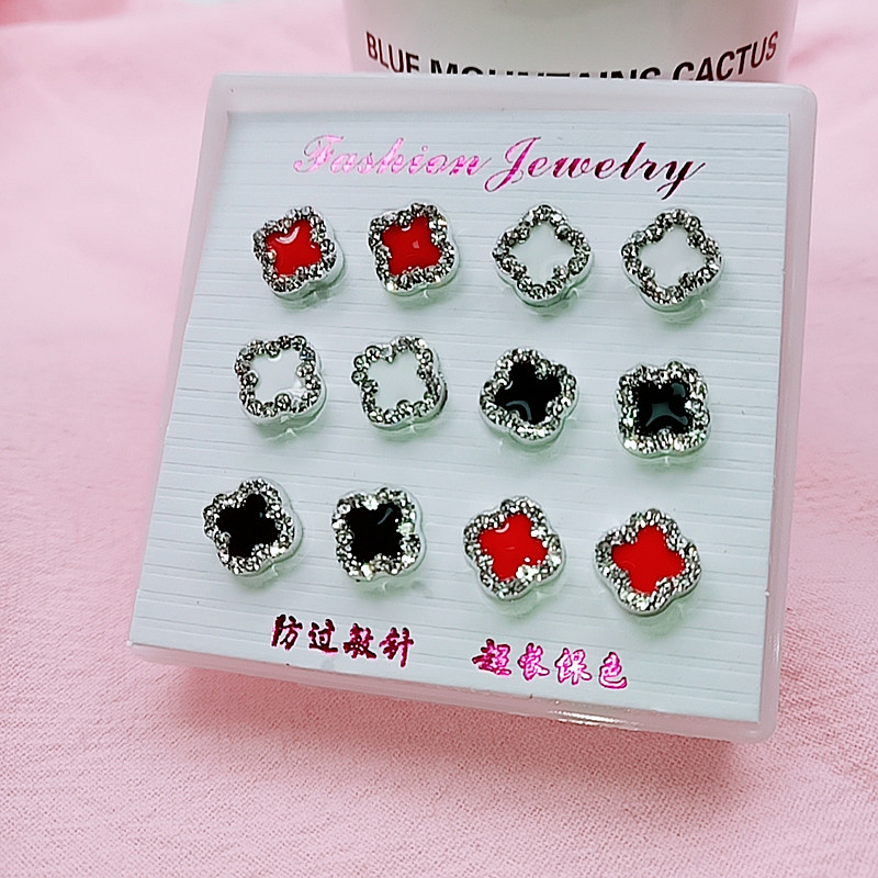 Three-color mixed round 6 pairs (plastic needle) three-color mixed heart 6 pairs (plastic needle) black and white four-leaf clover 6 pairs (plastic needle) black and white five-pointed star 6 pairs (plastic needle) three-color mixed four blade of grass