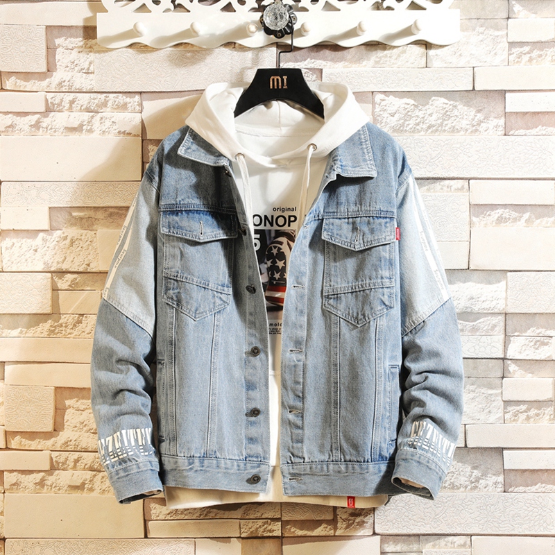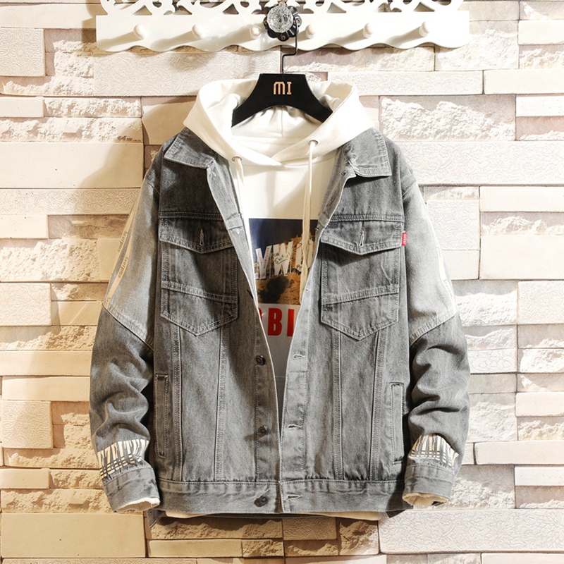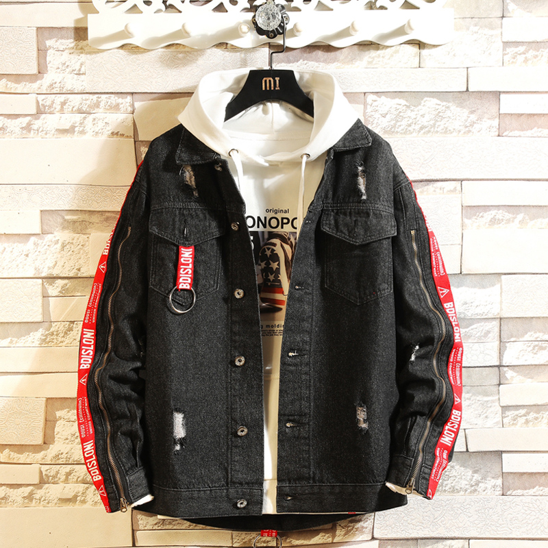 Spring ripped denim jacket men's jacket Korean version trend couple gown student casual spring and autumn loose clothes