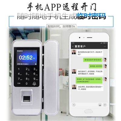 Glass door fingerprint lock open - hole glass door password card lock with attendance office fingerprint lock APP function