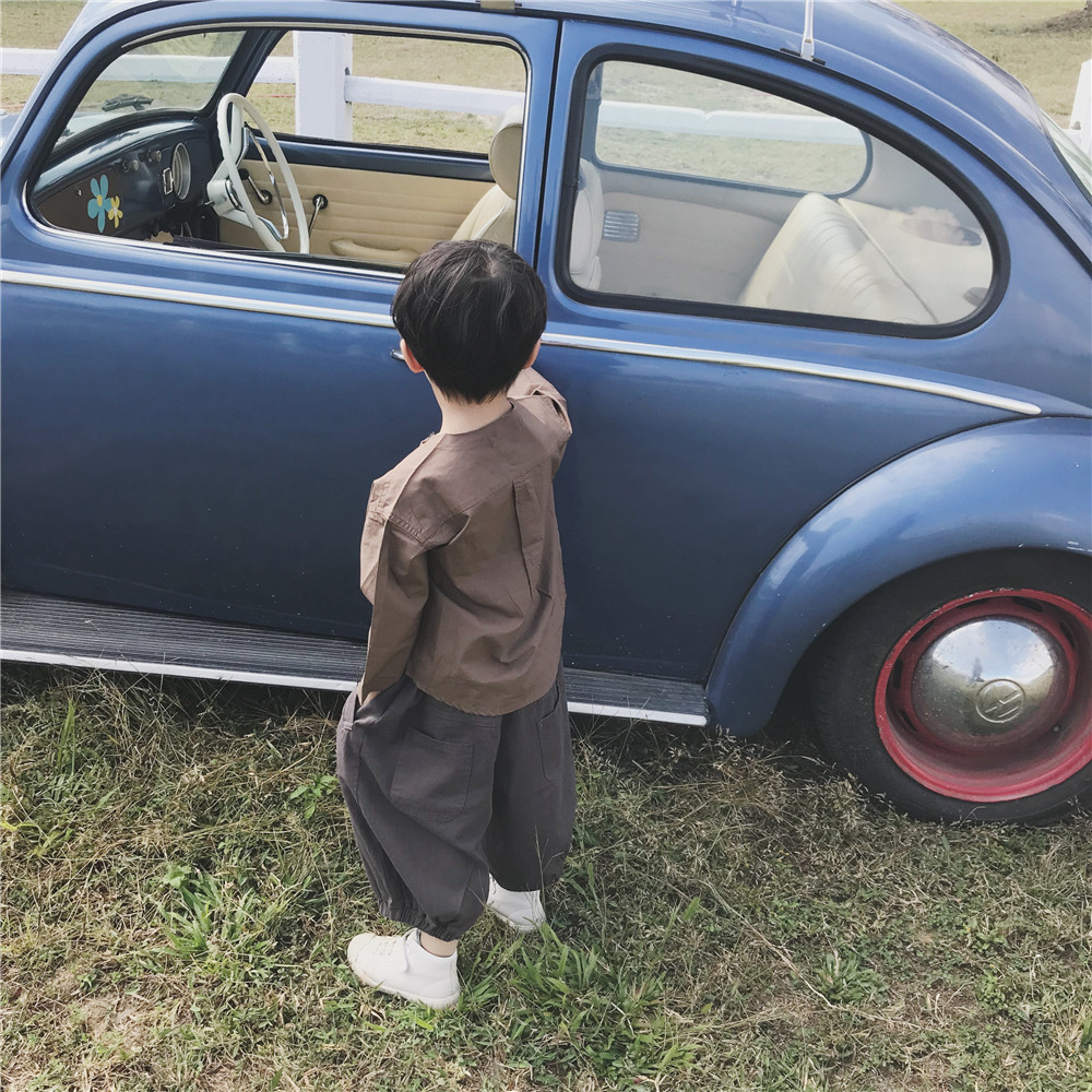 Children 22 new autumn clothes men's baby pure color retro long sleeve T-shirt with kiddie loose shirt round collar blouse