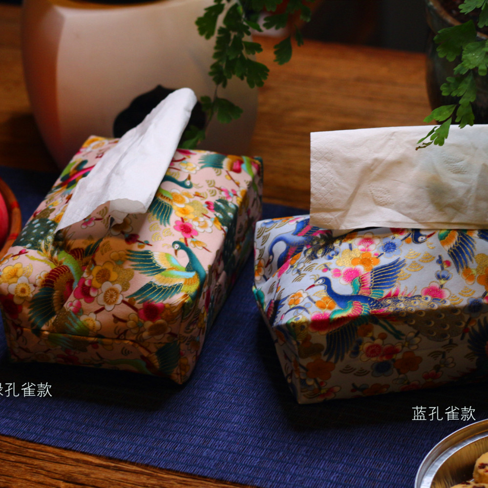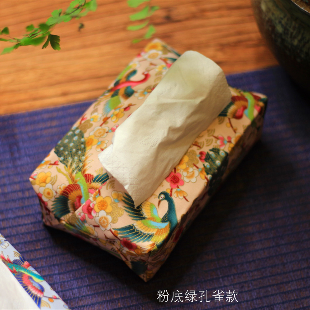 Original peacock gilded print fabric paper towel set paper towel bag draw bag car on-board paper draw box paper towel wrapped tissue box