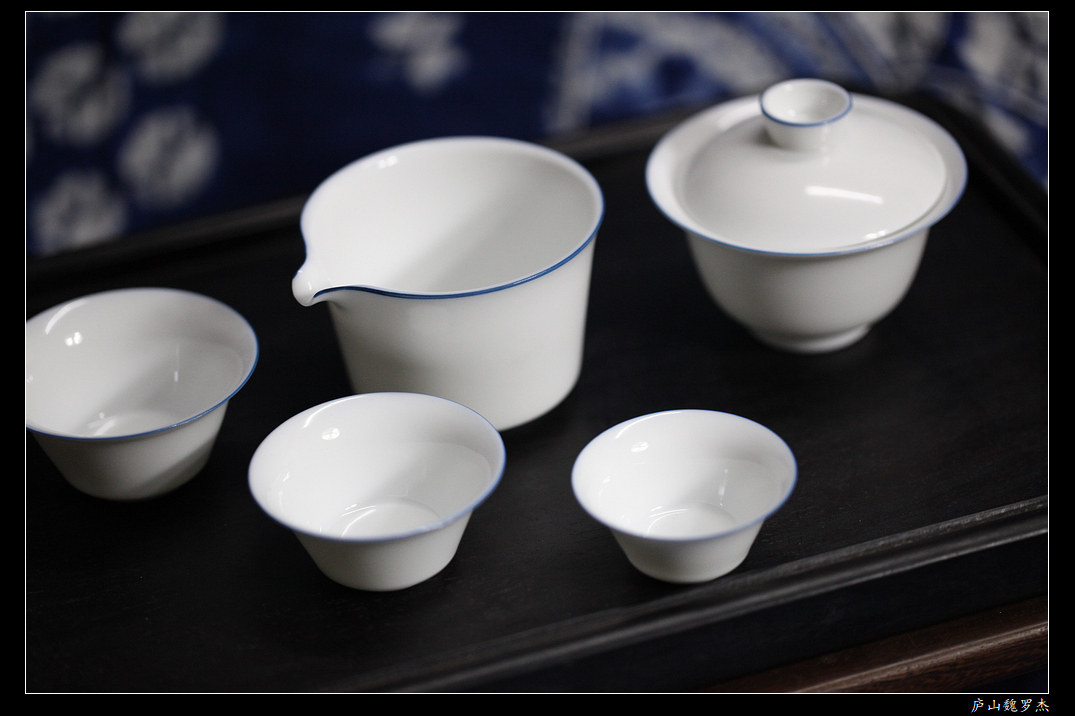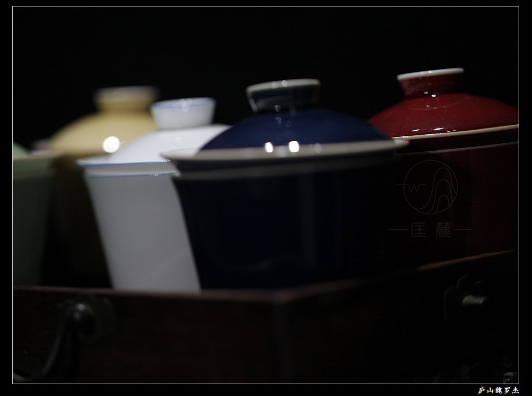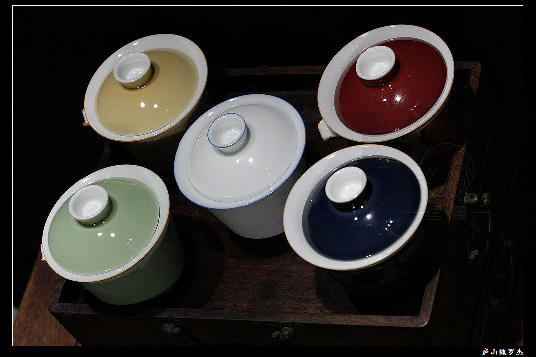 Hot sale Jingdezhen handmade Lang red Ji Blue bean green goose yellow white travel set cover bowl fair set tea set