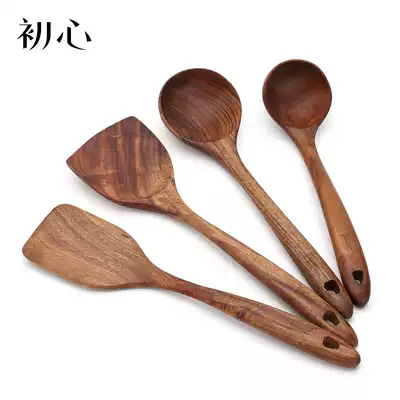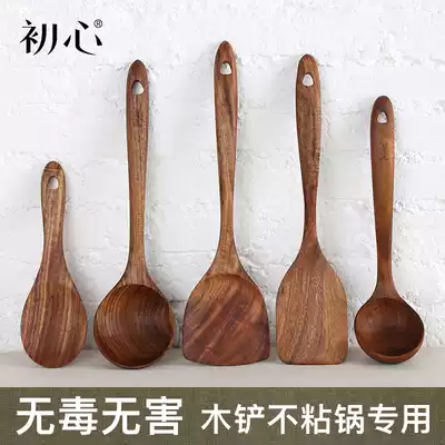 Wooden shovel Household high temperature resistant non-stick pot special shovel Wooden spoon set Kitchen cooking solid wood spatula long handle