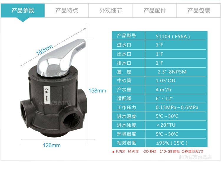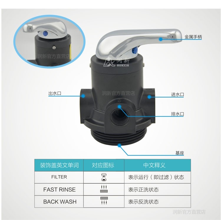 Runxin valve quartz sand activated carbon manganese sand filter water treatment F56A metal handle manual valve 51102
