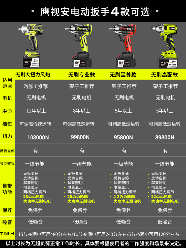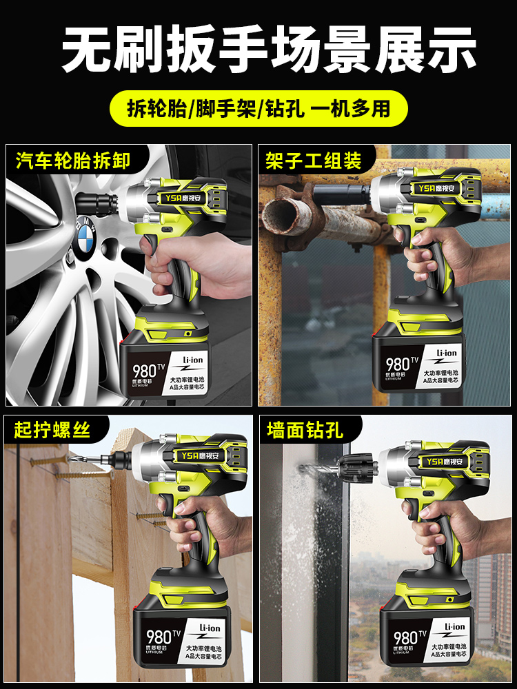 Yingshi An brushless electric screwdriver Large torque lithium electric charging wrench Impact auto repair shelf sleeve pneumatic wrench
