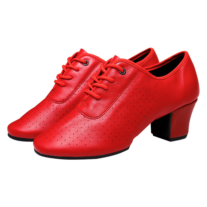 Red leather punching in the red leather