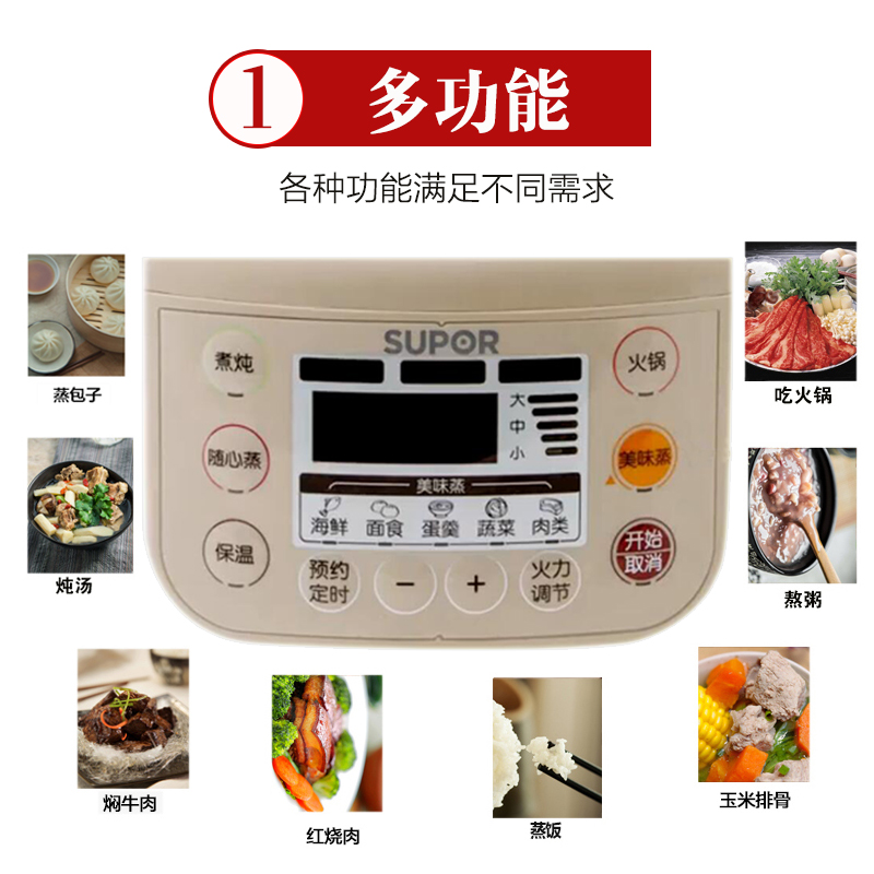 Supoir Electric Steam Boiler Multifunction Home Large Capacity Hot Pot Steam Pan Steamed electric steamer Intelligent three-layer