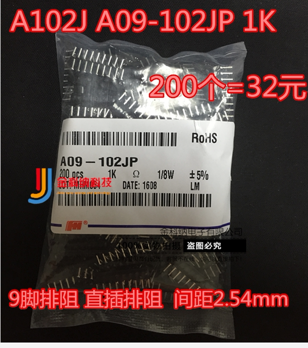 Straight insertion resistance A102J G 2% A09-102JP 1K 9 foot platoon resistance spacing 2 54mm 200