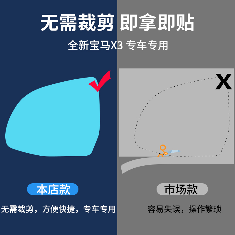 Suitable for 18-2021 BMWs new X3X4 rear mirror anti-rain film X3 retrofitted rear-view mirror waterproof anti-fog film