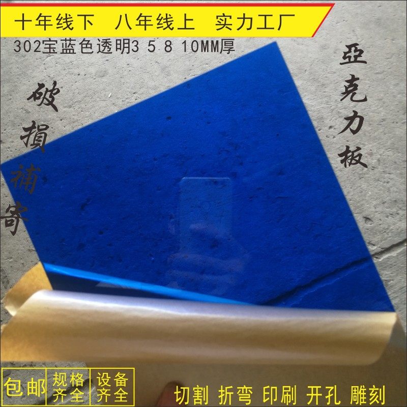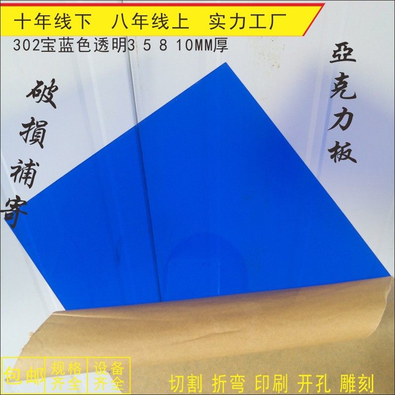 3MM thick treasure blue transparent organic glass plate set for bending engraving cutting acrylic plate processing customization